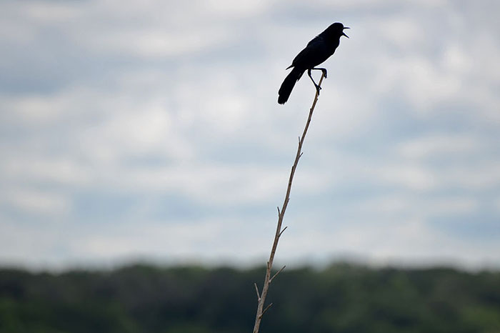 Common GrackleThe Common Grackle is found in many different environments. It lives in agricultural fields, city parks, backyards, open woodlands, forest edges, meadows and marshes. It can be seen sitting on telephone lines and walking across lawns. The only place you probably won't find a Grackle is in a dense forest.