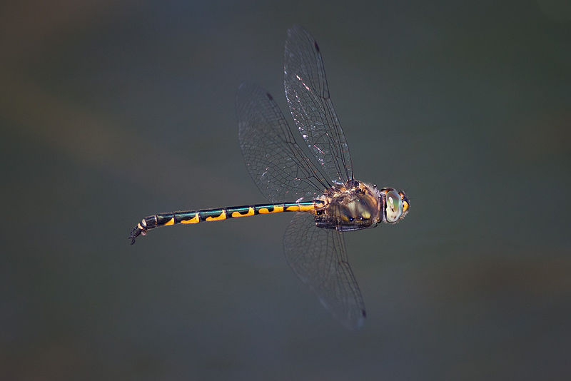 The orange-spotted emerald is found near muddy, slow-flowing rivers and streams.