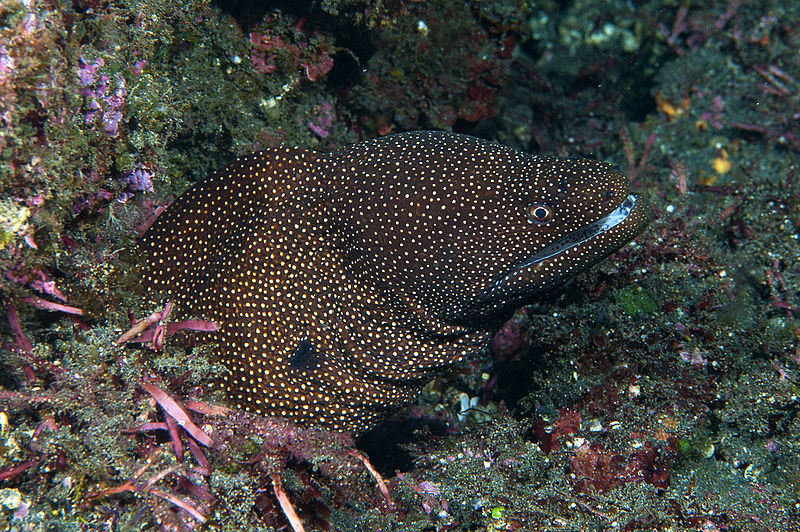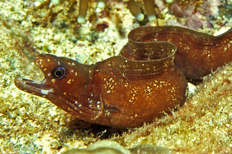 There are close to 200 species in this family of eels. Most species are found in shallow water among rocks and coral. and many species are active at night and spend the day hidden in the rock or coral crevices. Most species are found in tropical and sub-tropical marine environments, a few species can be found in brackish water, and a a handful of species are found in fresh water.
