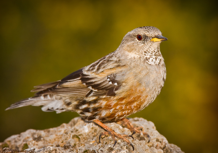 There are 13 species of birds in this family. Most species are found in mountainous regions of Europe, Africa, and Asia. They are small birds, 5-7 inches in length, and have thin, pointed bills; short, rounded wings; and squared, medium-sized tails. Most species are brown to gray in color and look like sparrows. They move with a hopping or shuffling sideways gait and are sometimes called shufflewings!