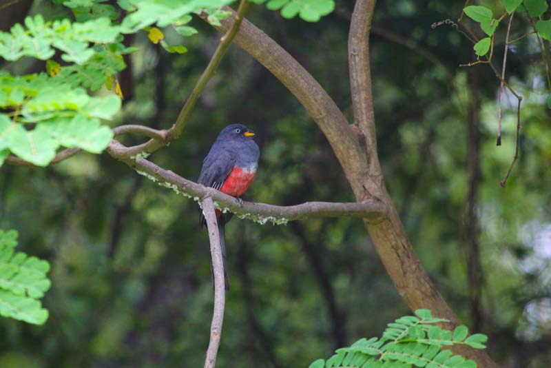 The slaty-tailed trogon is found in Belize, Colombia, Costa Rica, Ecuador, Guatemala, Honduras, Mexico, Nicaragua, and Panama.