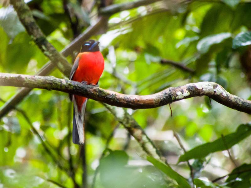 The scarlet-rumped trogon is found in Brunei Darussalam, Indonesia, Malaysia, Myanmar, and Thailand.