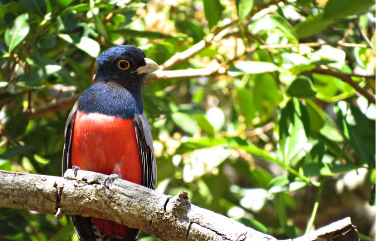 The Hispaniolan trogon is found in the Dominican Republic and Haiti.