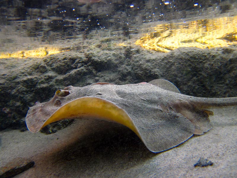 The round stingray feeds on bottom dwelling invertebrates and small fish.