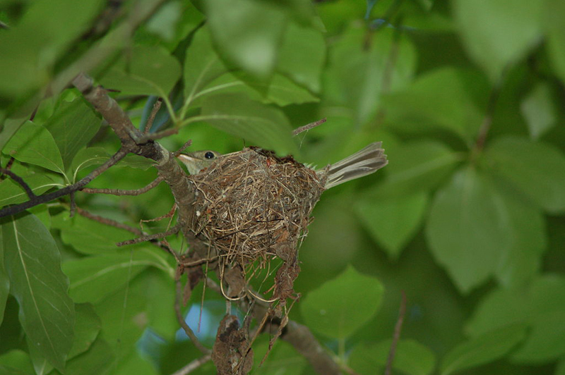 Acadian FlycatcherThe female lays 2-4 eggs in a open cup nest woven of plant fibers and placed in a bush or tree, sometimes over a stream. The chicks hatch in two weeks and fledge when they are 13-15 days old. The female may have two broods a year.