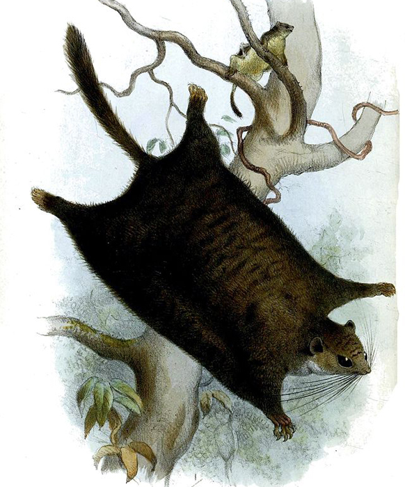 All of the species in this family, except for the flightless scaly-tailed squirrel, have a membrane that runs from their front legs to their rear legs that lets them glide from tree branch to tree branch.
