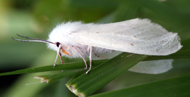 The Virginian tiger moth has white forewings and hindwings.