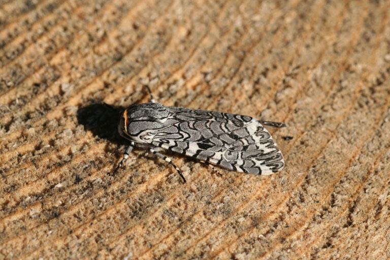 The bicolored moth is found in the northern U.S. and Canada.
