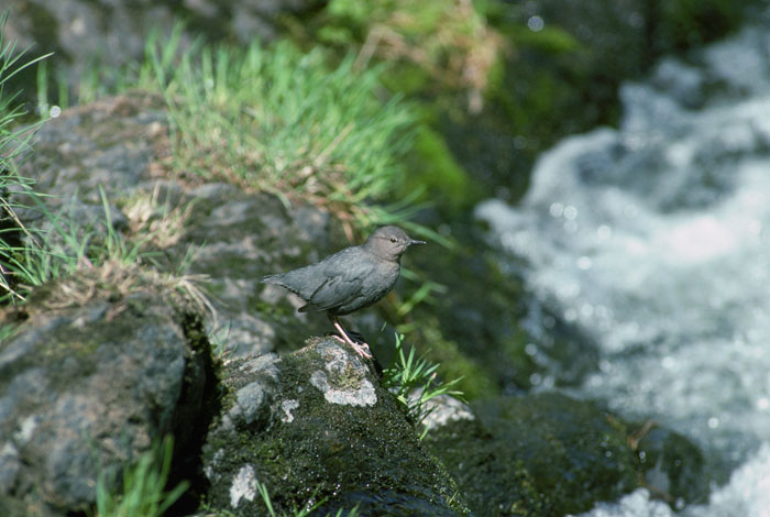 The American dipper (Cinclus mexicanus) is the only species found in North America. It is found from Northern Alaska south through the mountains of the west. It lives near fast-moving streams. It is about eight inches in length and is gray with a short, stubby tail.