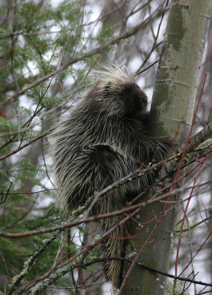 Porcupines have long spiny barbed hairs or quills. They do not shoot their quills, if an attacking animals gets too close to a porcupine, the quills can embed themselves into the attacking animal.