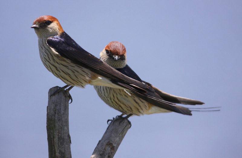 There are around 82 bird species in this family. They have short, wide bills; short legs; and small, weak feet. Their bodies are long and slender and they have long, pointed wings. Many species have long, forked tails. |
