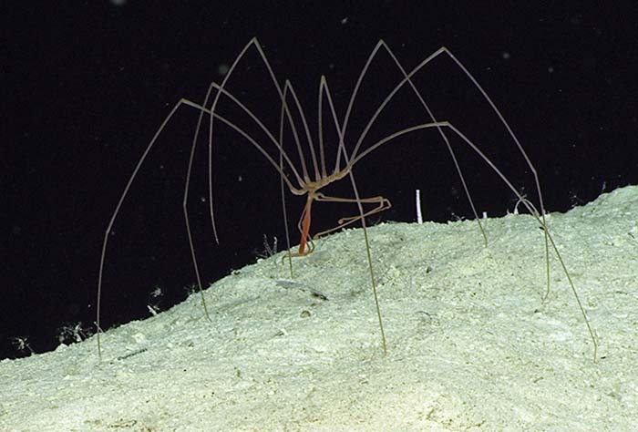 Sea spiders are found from the intertidal zone to depths of more than 20,000 feet! Sea spiders don't swim, they walk along the ocean floor. |