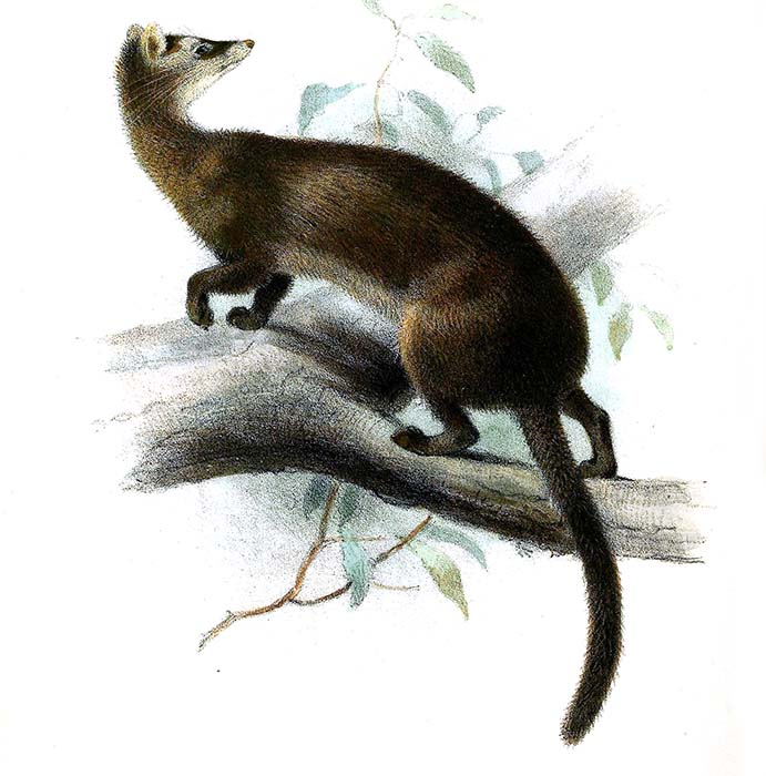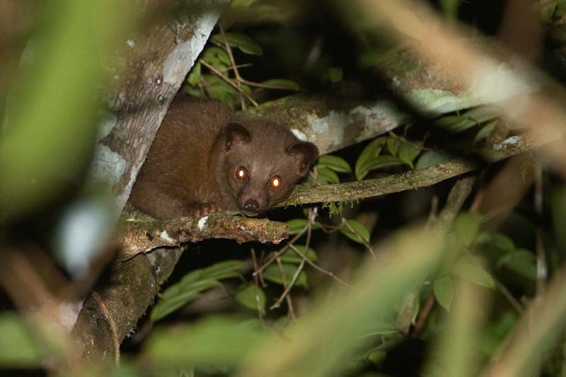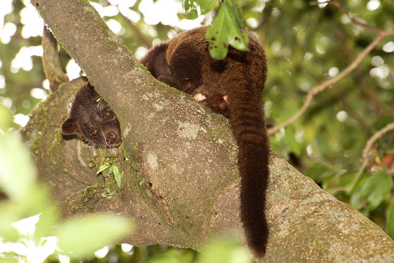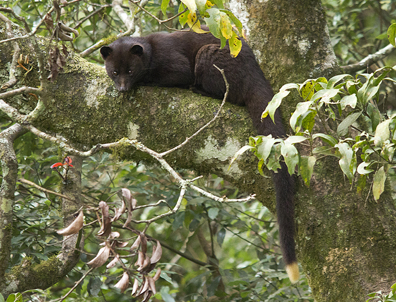 The brown palm civet is found in tropical rainforests along the western coast of India.